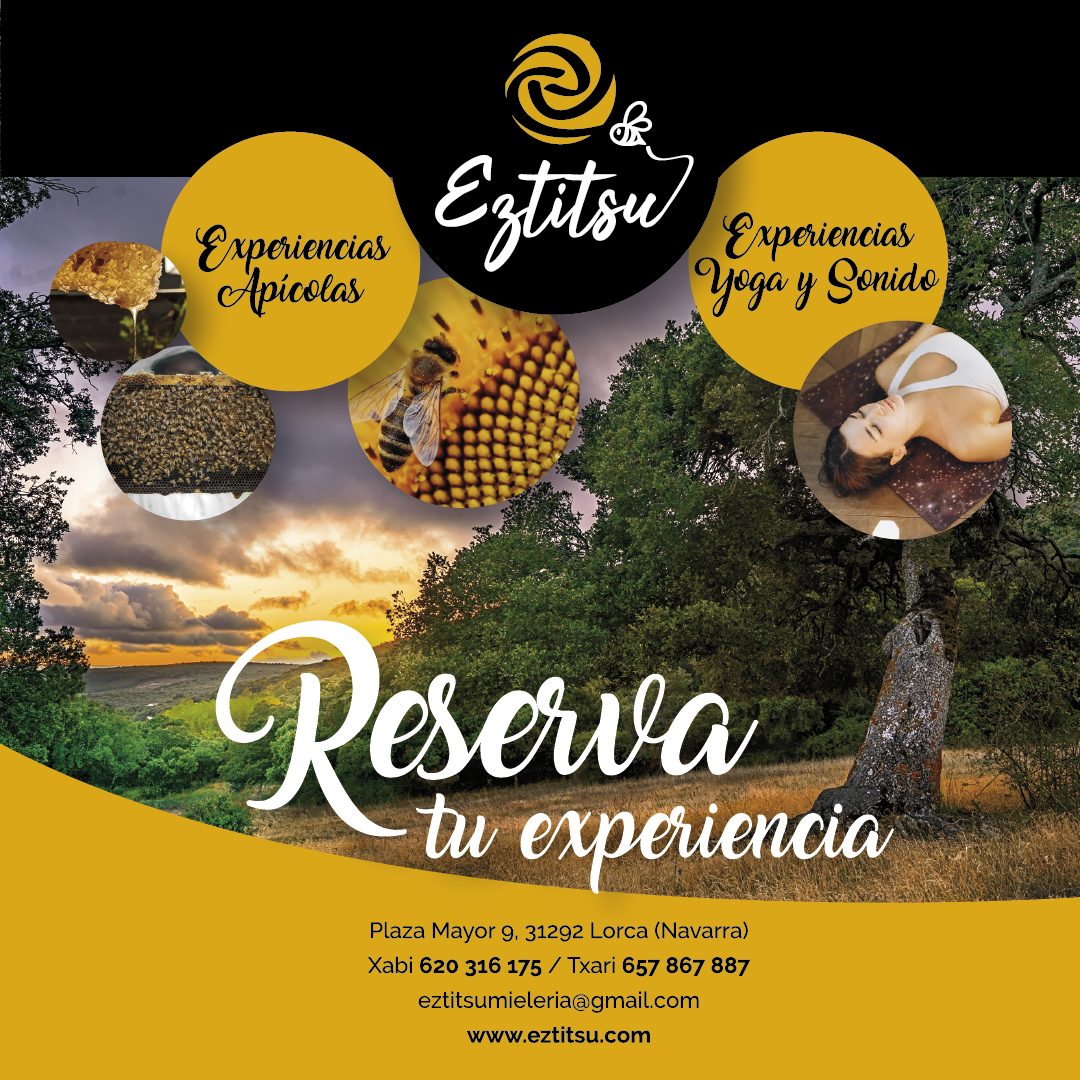 Eztitsu es un proyecto creado junto a mi compañero de camino Xabi Azanza, apicultor, donde además de vender miel de producción propia y cerveza con miel "eztitsu", ofrecemos experiencias sobre apicultura o yoga y sonido. Visitas guiadas sobre apicultura, masaje sonoro...etc.